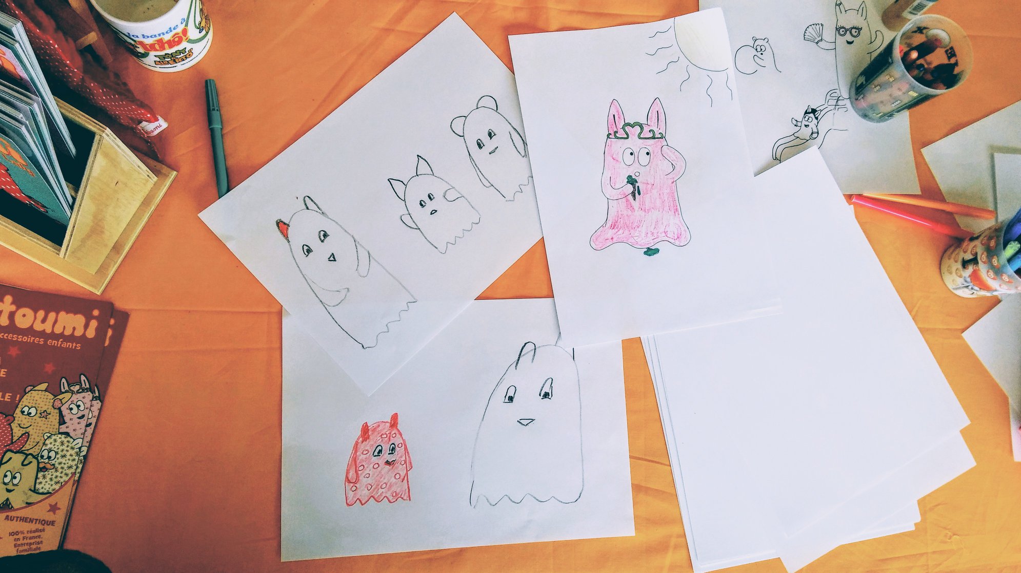 4 compagnons Tinou ainsi que les albums Fantoumi vont circuler entre les mains des enfants chaque soir, un excellent moyen de faire plus ample connaissance avec nos petits fantômes !